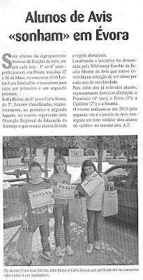 - Textos lidos em Évora, na final do Concurso «Um Leitor é um Sonhador»;