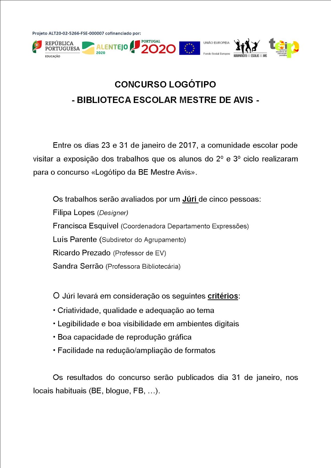 Vencedor do concurso logótipo da BE Mestre Avis